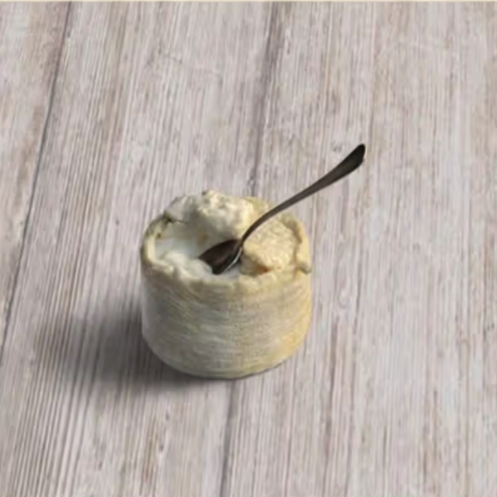 Llet: Crua de cabra Maduració: Mínim 1 mes Coagulació: Enzimàtica Qual: Vegetal (herbacol) Escorça: Comestible Textura: Tova, cremosa, untable Ús recomanat: Tallar per la part superior i consumir amb cullera o ganivet d’untar Notes de tast, Aromes a xampi, suau, matisos florals i de pastura