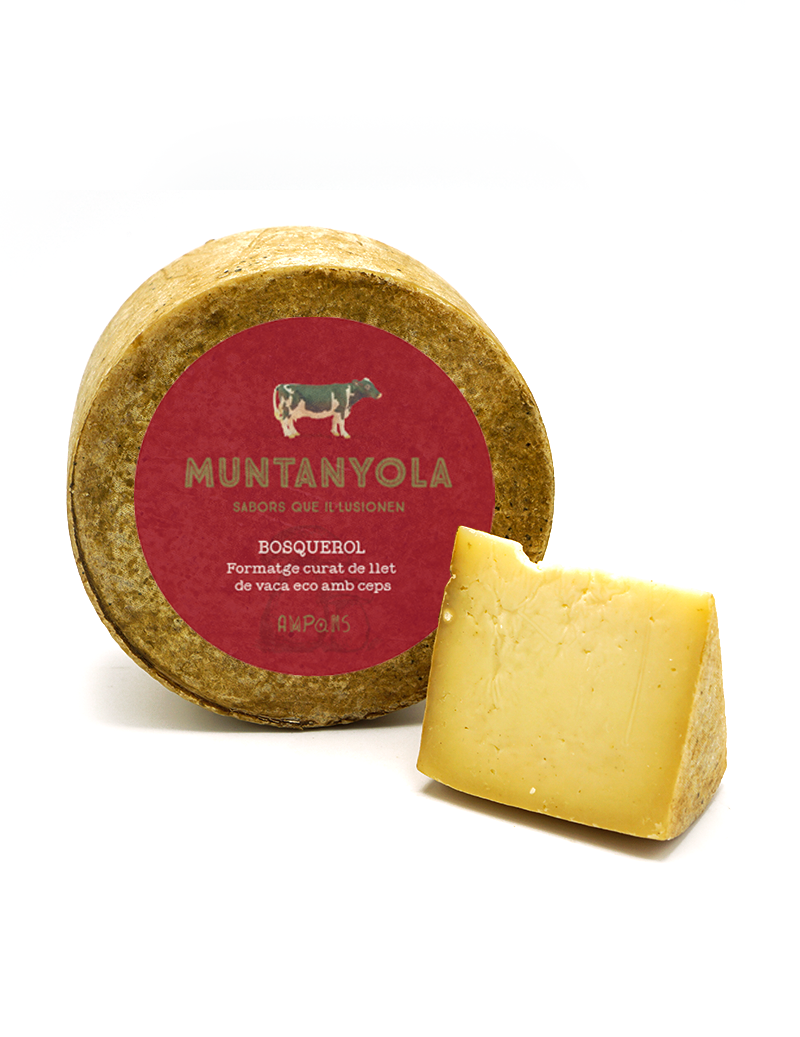 Pes: 185 g aprox. Llet: Vaca, ecològica i pasteuritzada Tipus de formatge: Curat, escorça rentada, amb pols de Boletus Curació: Mínim 4 mesos Conservació: 4 °C – 6 °C Ingredients: Llet ecològica pasteuritzada de vaca, quall, ferments làctics, Boletus edulis deshi de Muntanyola, amb tècniques tradicionals i respecte per la natura. La seva escorça de color terracota i aroma a bosc el fa visualment atractiu i sofisticat. Textura untuosa i cremosa, amb sabor que evoluciona a la boca i ofereix una experiència gastronòmica única. Recomanat per acompanyar vins blancs, fruits vermells o pa artesà, ideal per a moments especials o gurmet.