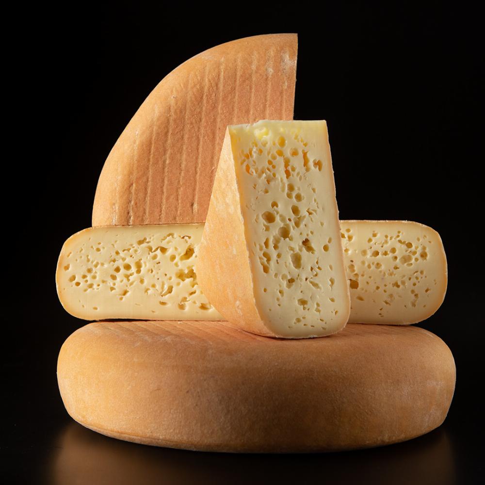 Presentat en peces rodones i aplanades d’aproximadament 2,5 kg, amb falques disponibles de 350 gi 1 kg. Durant el tall, s’observen grans ulls rodons fruit de la fermentació, que aporten una textura cremosa i cridanera. El seu sabor és intens i agradable, ideal per a taules de formatges, maridatges amb vins negres o blancs estructurats, o per als que busquen un formatge amb personalitat marcada. Llet: Crua, ecològica, vaca Tipus de formatge: Pasta premsada cuita, escorça rentada Pes aproximat: 1 kg, 350 g