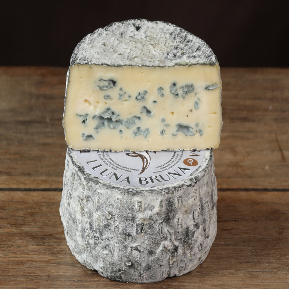 Llet: Crua ecològica de vaca Bruna Tipus: Formatge blau Curació: Mínim 2 mesos Escorça: Amb carbó vegetal i Penicillium blanc Sabor: Aromàtic, blau equilibrat Temporada: Tot l’any