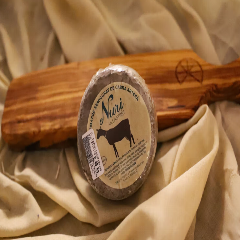 De textura ferma però agradable, el Semicurat Nuri ofereix un sabor net i equilibrat, amb notes làctiques suaus i un punt cabrum ben integrat. És un formatge molt polivalent: ideal tant per a consum directe com per a cuina, taules de formatges o receptes del dia a dia. Un autèntic clàssic, honest i funcional, que crea afició. Pes aproximat: 400–450 g Llet: Cabra, pasteuritzada Tipus de formatge: Semicurat, escorça florida Intensitat: Baixa–mitjana (2)