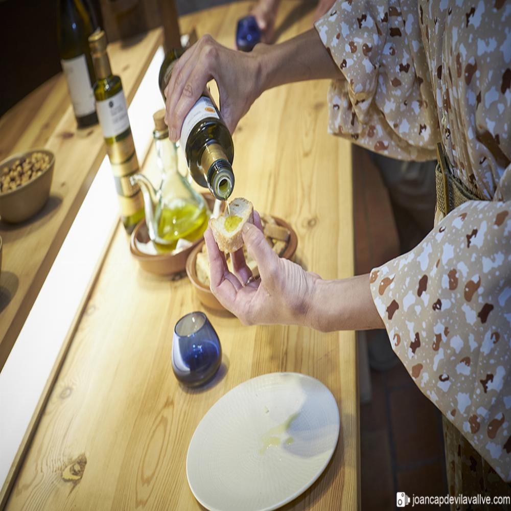 Entre els paisatges ondulats del Priorat, on els murs de pedra seca sostenen segles d´història, s´alça el Celler Masroig, un emblema del vi i de l´oli català. En aquesta terra aspra i lluminosa, les oliveres creixen al costat de les vinyes, compartint el mateix terra d’argila vermella i pissarra que dóna caràcter tant al vi com a l’oli. Aquí, la tradició oleícola es fon amb la vitivinícola per oferir una experiència completa de territori, cultura i sabor. L’oli del Celler Masroig és un oli d’oliva verge extra de varietat arbequina, elaborat amb cura a partir d’olives recol·lectades al punt òptim de maduració. La seva aroma intensa recorda el verd fresc de l’herba acabada de tallar i el camp mediterrani: destaquen notes de fonoll, carxofa i ametlla verda, amb matisos subtils de tomàquet i poma. A la boca es mostra suau i equilibrat, amb una harmonia perfecta entre dolçor i picor, sense rastre d’astringència. La visita al Celler Masroig convida a endinsar-se a les finques d’oliveres que voregen les terres de cultiu, on els arbres centenaris s’alineen sobre les marjades de pedra construïdes per mans pageses fa generacions. Aquest passeig entre oliverars és una immersió a la cultura agrícola del Priorat, un territori on l’oli ha estat, des de sempre, un bé essencial i un símbol de vida mediterrània. El recorregut es completa amb un tast guiat que desperta els sentits: l’oli es prova sobre pa torrat i xocolata, evocant els sabors de la infància i els costums més antics de la regió. L´experiència s´enriqueix amb la degustació de tres vins seleccionats del propi celler, en un maridatge que celebra la dualitat d´aquesta terra generosa: la força del vi i la suavitat de l´oli.